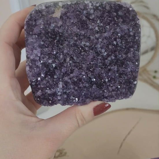 Angebot des Tages 22.02.2026 Set bestehend aus: Amethyst Kristalldruse, Pyrit mit Hämatit Kristallstufe, Räucherstäbchen Kronenchakra