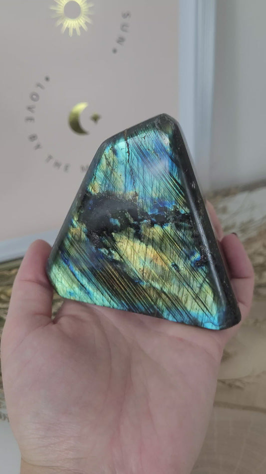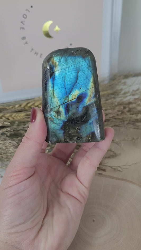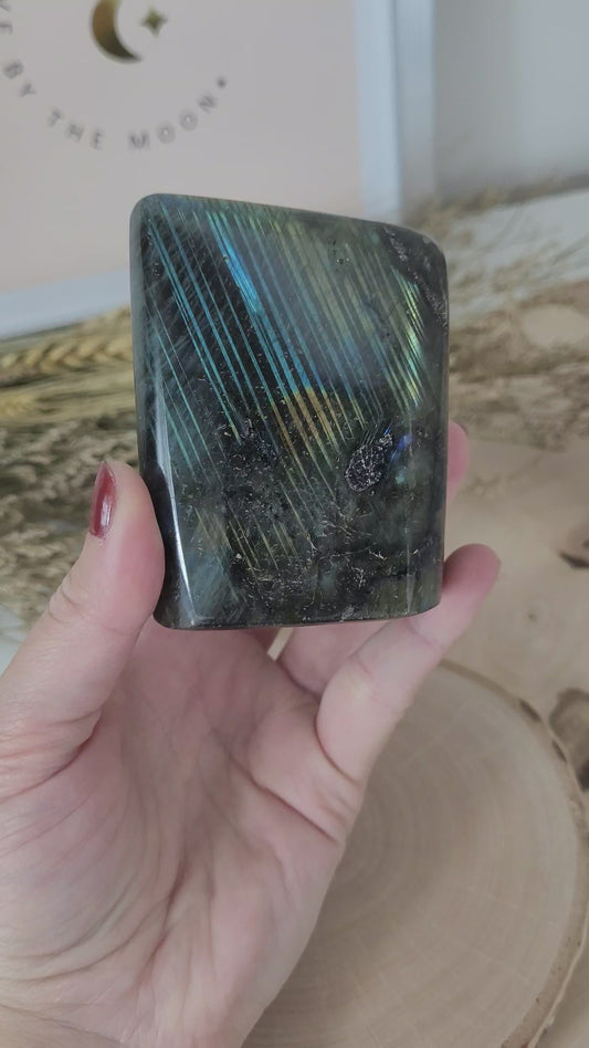 Labradorit Freiform 8 x 8,9 cm, 481g