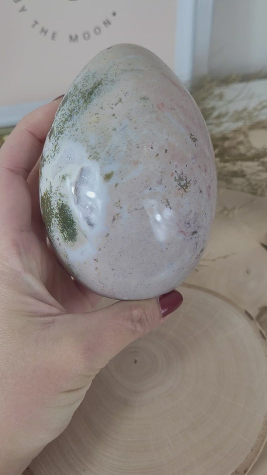 Ozean Chalcedon Kugel mit Kristalldruse, Druzy Sphärolith Chalcedon 6,9cm Durchmesser, 435g