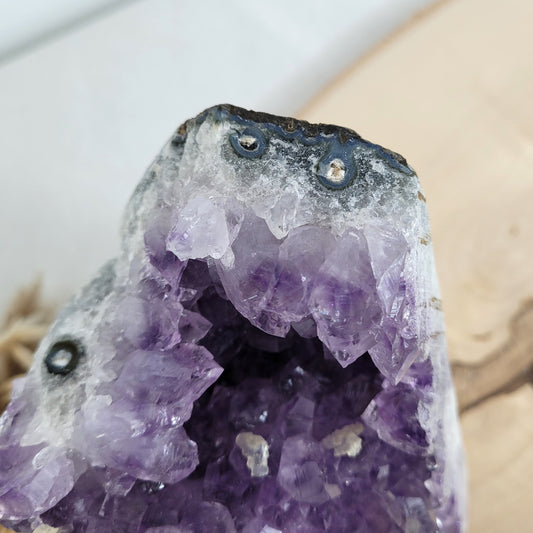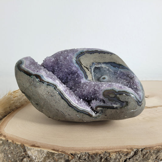 Amethyst Kristalldruse mit Chalcedon Auge und Bänderung 15,4x15,3cm, 2486g