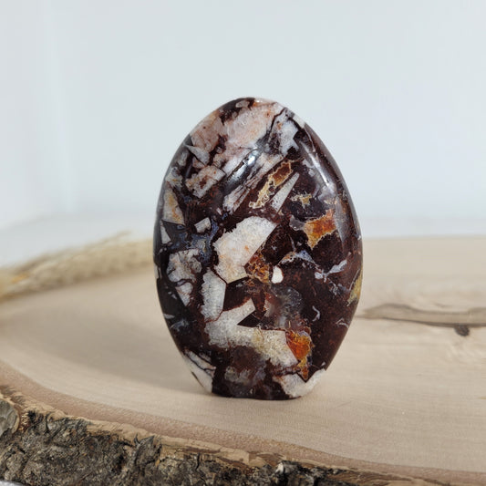 Brekzien Jaspis mit Chalcedon Freiform 6,6 x 5,4 cm, 117g
