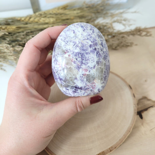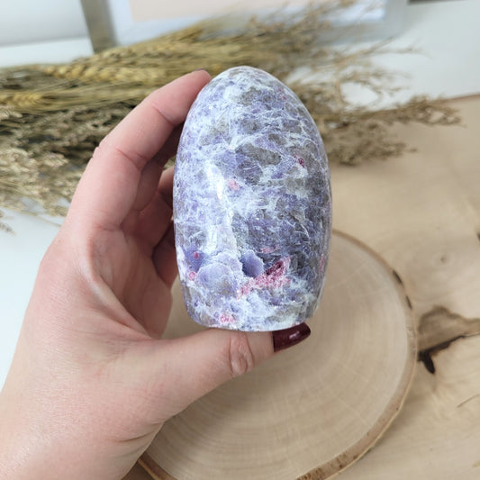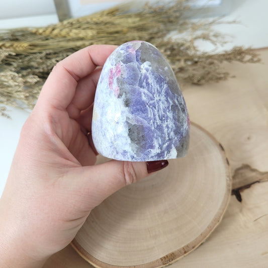 Unicorn Stone Pinker Turmalin in Lepidolith und Feldspat Freiform 8,3 x 5,4cm, 405g