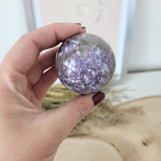 Pinker Turmalin in Lepidolith und Feldspat Unicorn Stone Kugel 4cm Durchmesser