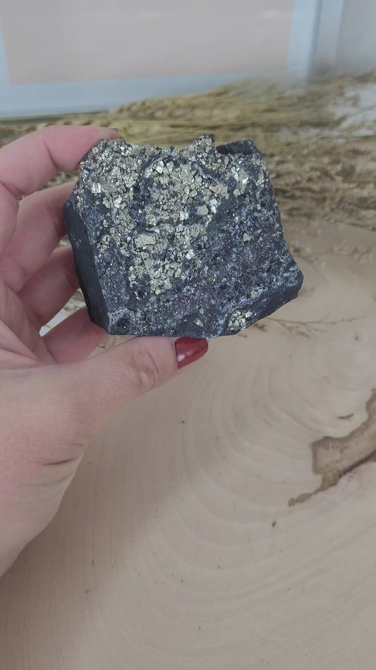 Schungit mit Pyrit Rohstein Freiform 6 x 7 cm