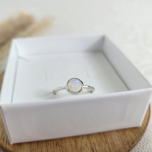 Regenbogenmondstein Ring Silber 925 Ringgröße 56