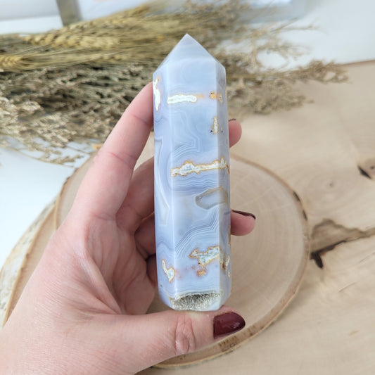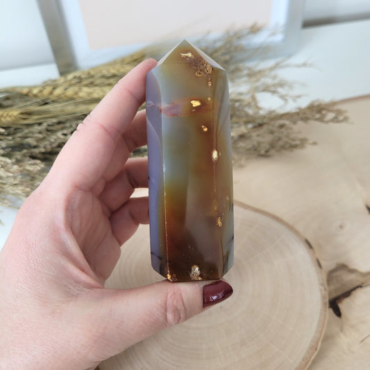 Dendriten Achat Turm 11,3 x 3,4 cm, 192g