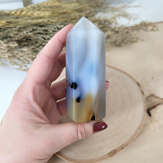 Dendriten Achat Turm 10,1 x 3,1 cm, 160g