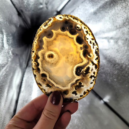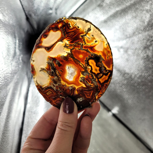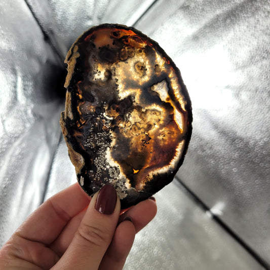 Achat Scheibe Extra-Qualität 8,9 x 7,8cm inklusive Holzaufsteller Teelichthalter