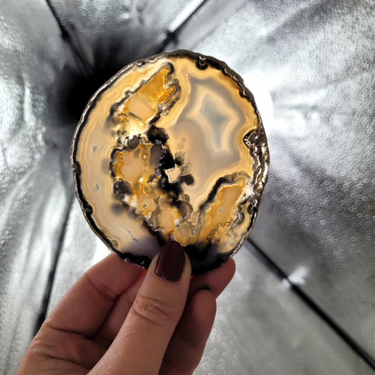 Achat Scheibe Extra-Qualität 8,2 x 7cm inklusive Holzaufsteller Teelichthalter