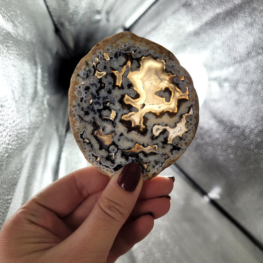 Achat Scheibe Extra-Qualität 8,2 x 9,4cm inklusive Holzaufsteller Teelichthalter