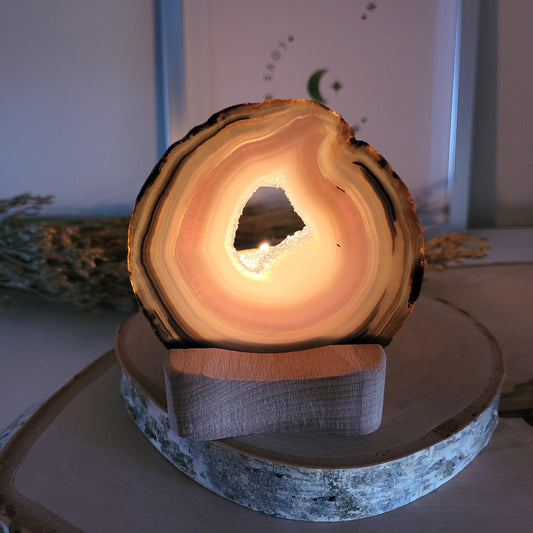 Achat Scheibe 10,3 x 9,9cm inklusive Holzaufsteller Teelichthalter