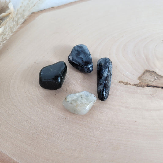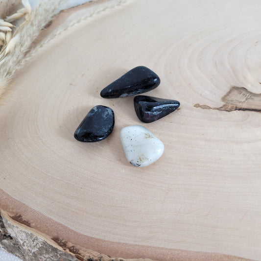 Set 4 Stück Pegmatit Nephelin Syenit Trommelsteine