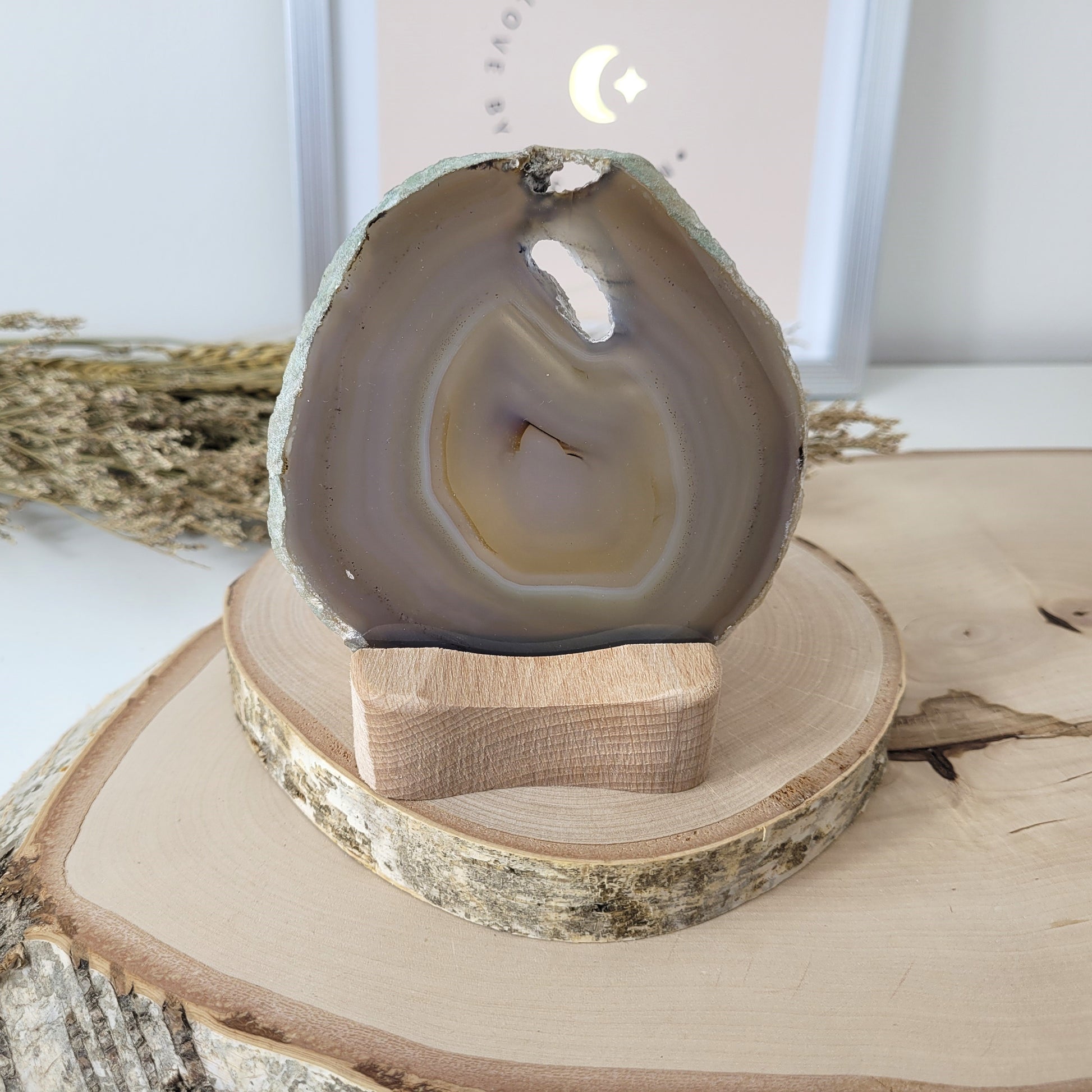 Achat Scheibe 10,3 x 9,9cm inklusive Holzaufsteller Teelichthalter