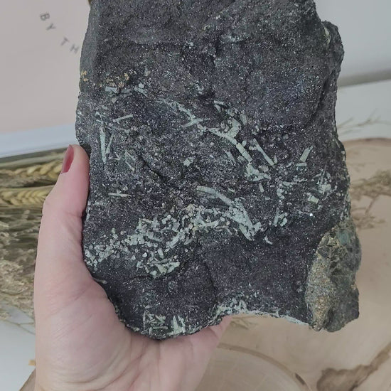 Dieser wunderschöne alpinen Rohstein mit Beryll Kristallen stammt aus dem Habachtal, dem Hohen Tauern Gebirge in Österreich. Der Rohstein hat eine Größe von 16x11,3cm und wiegt 1047g (1,047kg). Es handelt sich genau um den Rohstein, der auf den Bildern zu sehen ist