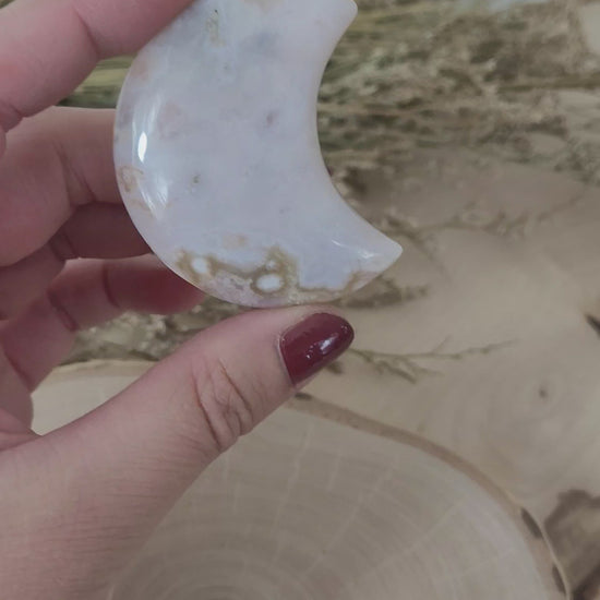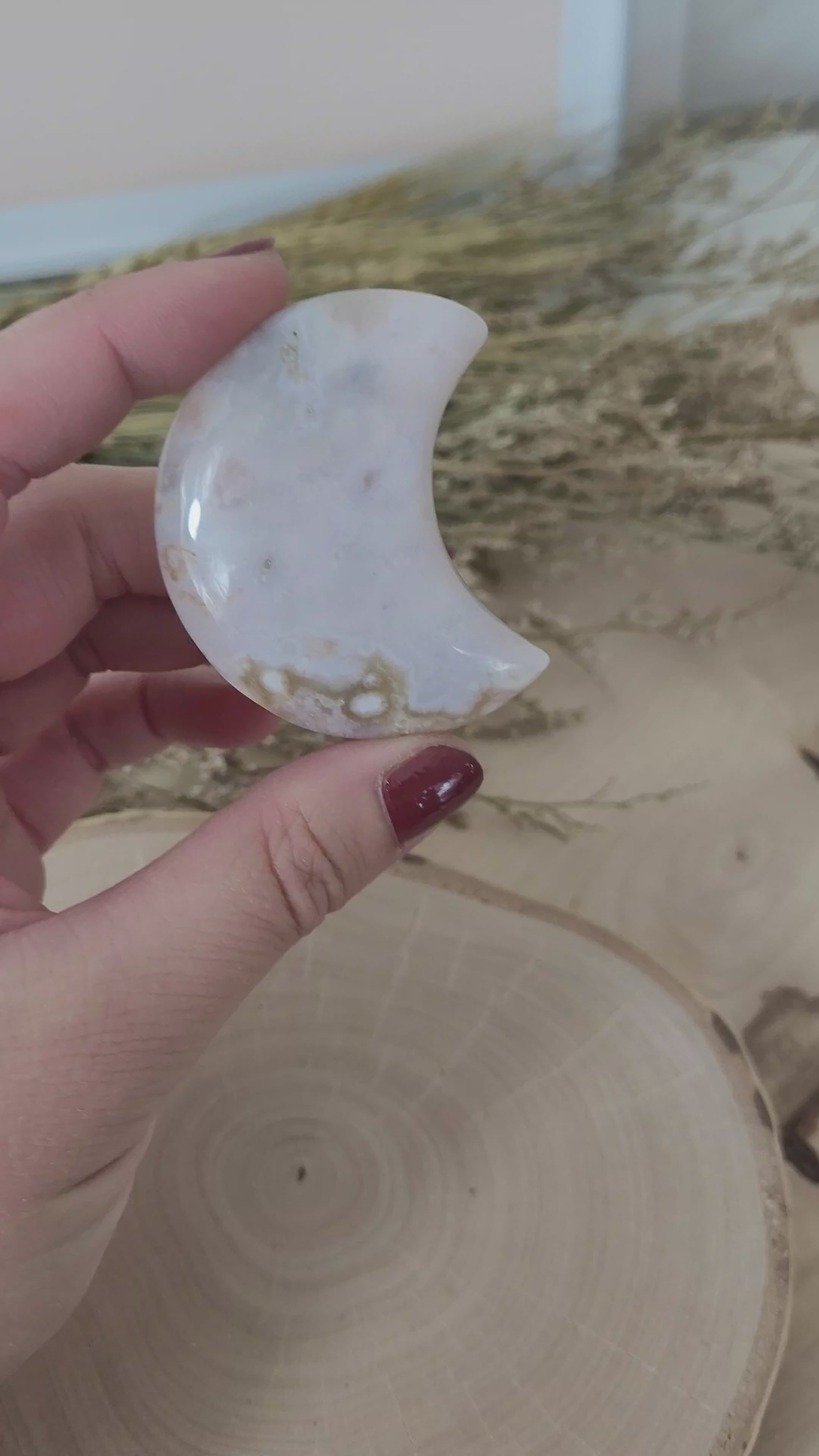 Dieser wunderschöne Blumenachat Mond hat eine Größe von ca. 5cm.