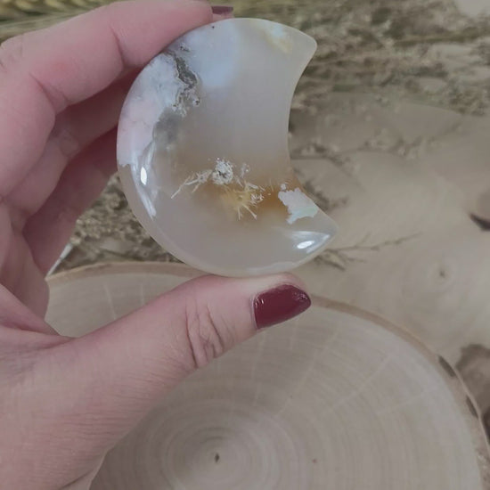 Dieser wunderschöne Blumenachat Mond hat eine Größe von ca. 5cm.