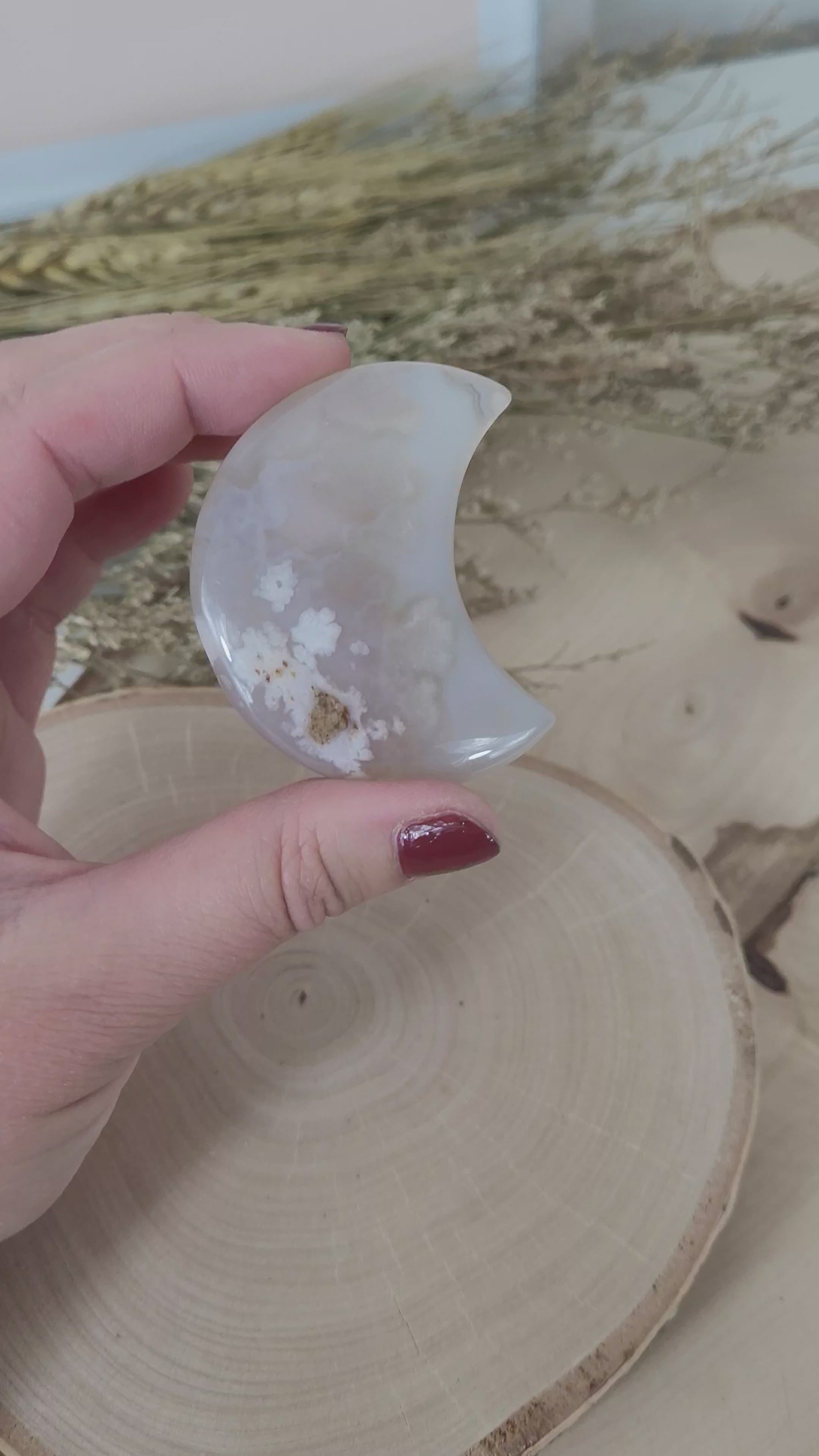 Dieser wunderschöne Blumenachat Mond hat eine Größe von ca. 5cm.