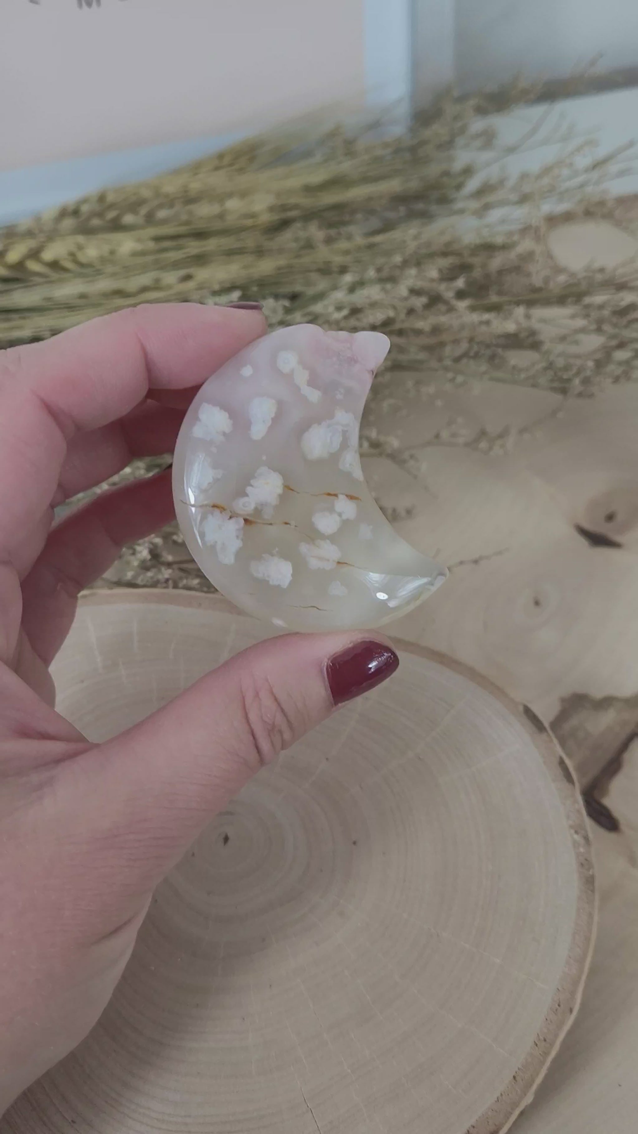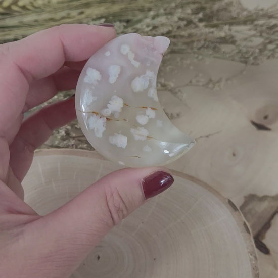 Dieser wunderschöne Blumenachat Mond hat eine Größe von ca. 5cm.