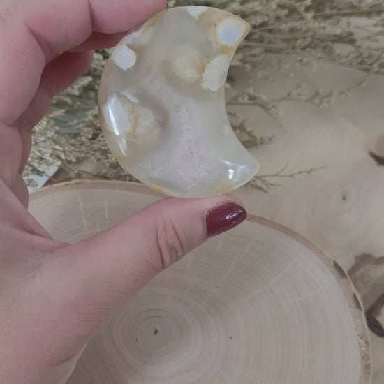 Dieser wunderschöne Blumenachat Mond hat eine Größe von ca. 5cm.