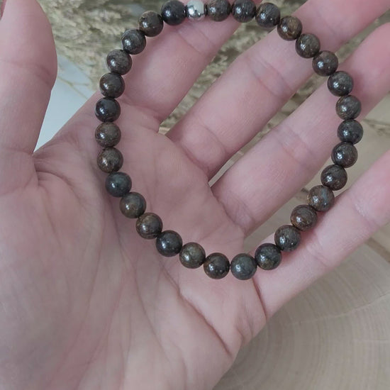 Bronzit Rubin Armband Kugeln 6mm, Endperle aus hochwertigem Edelstahl (Stainless Steel, rostfrei und wasserfest). Armbandlänge ca. 19 cm.