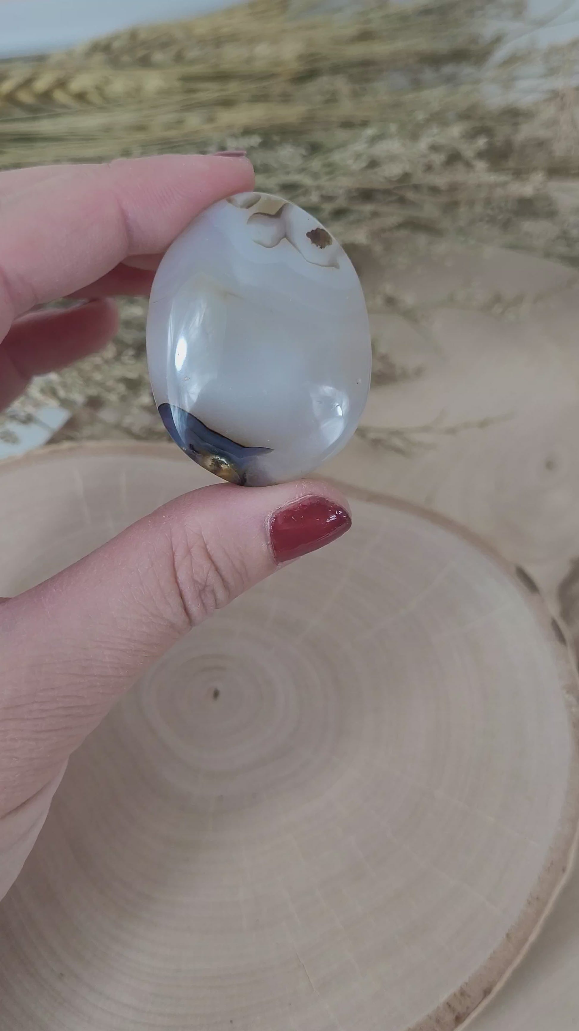 Der Dendriten Achat Handstein hat eine Größe zwischen 4-4,5cm.