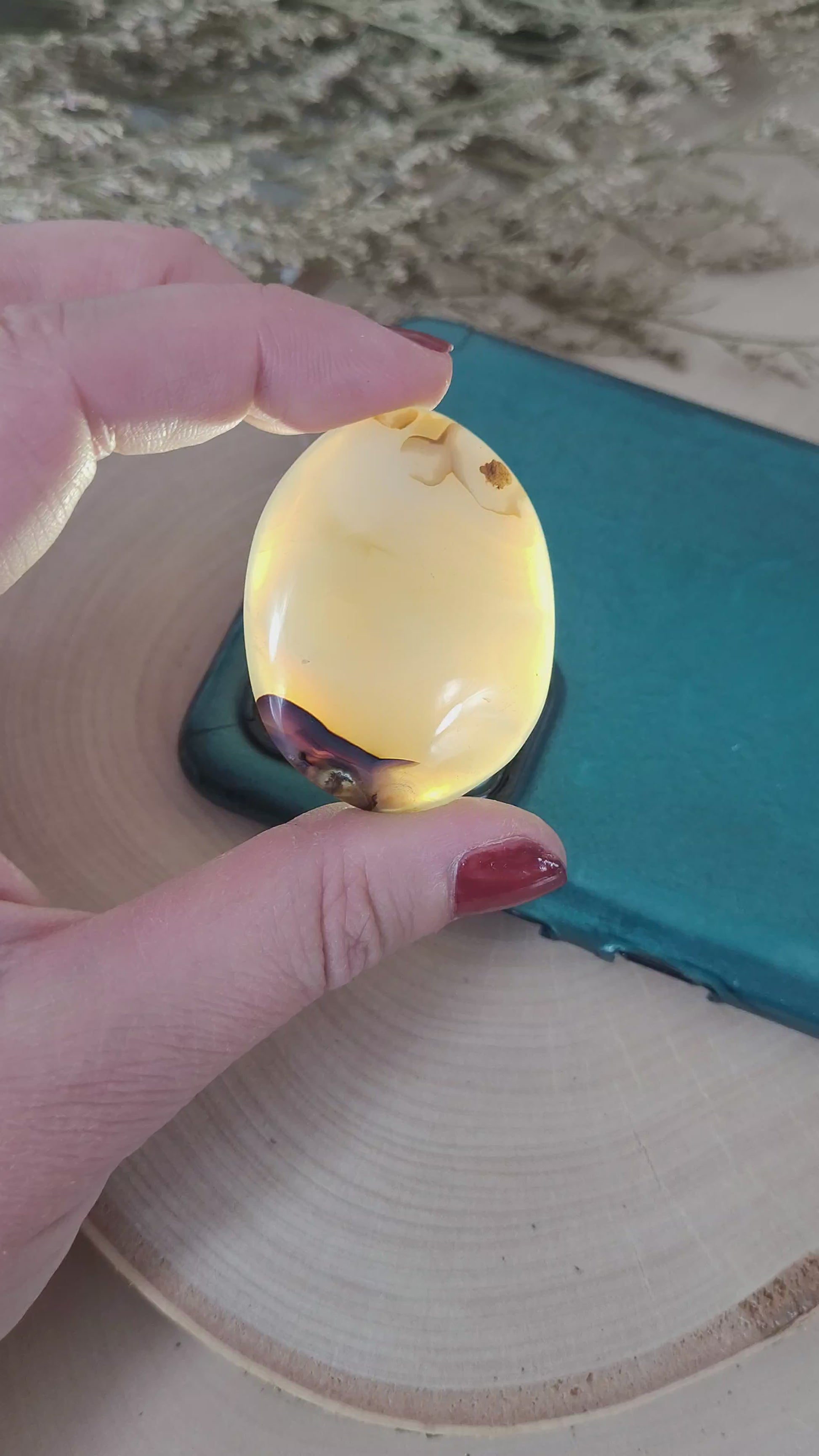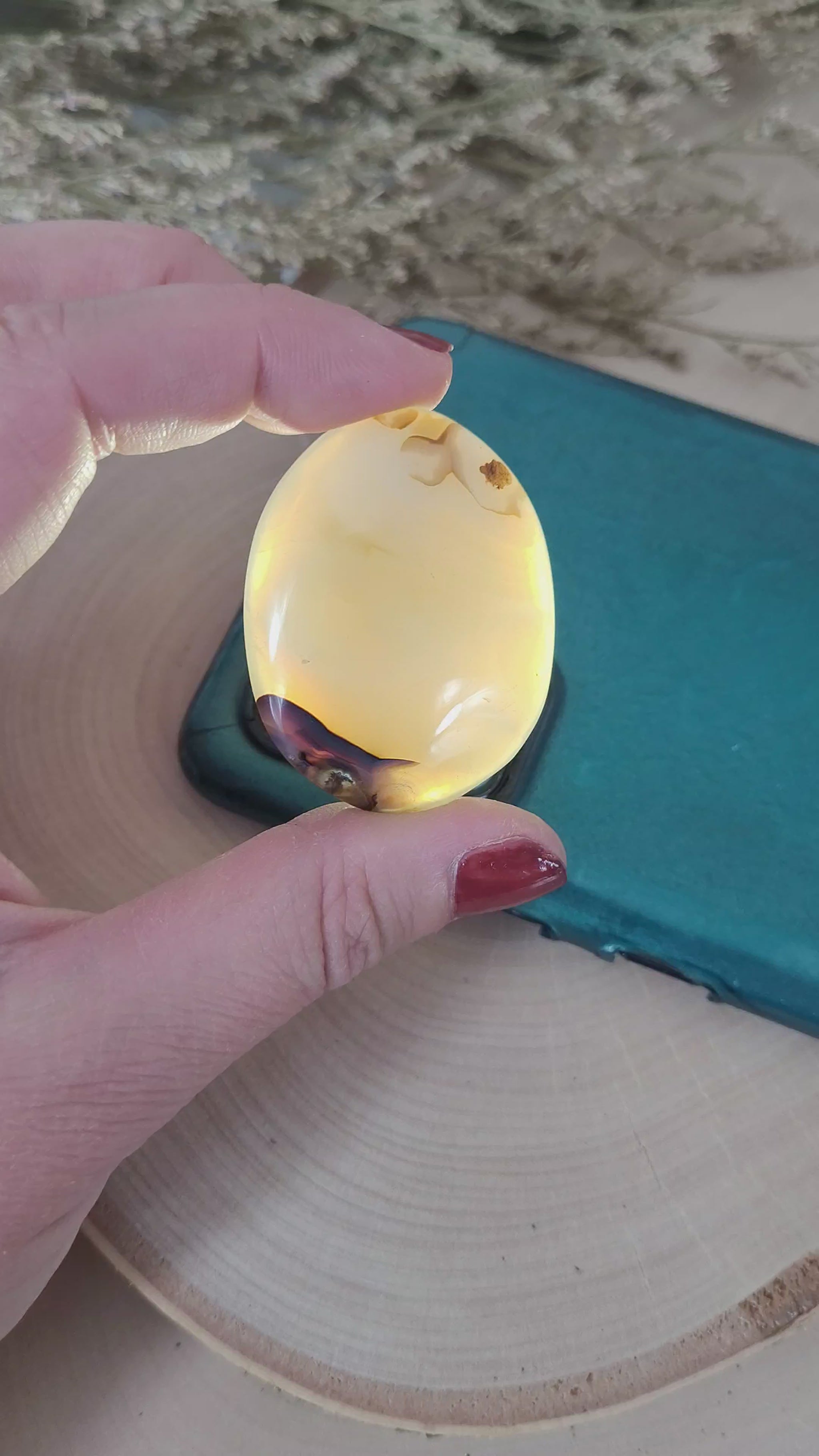 Dieser Scheibenstein hat einen aufpolierten Einschluss, also kleine Kerbe, daher im Preis vergünstigt.