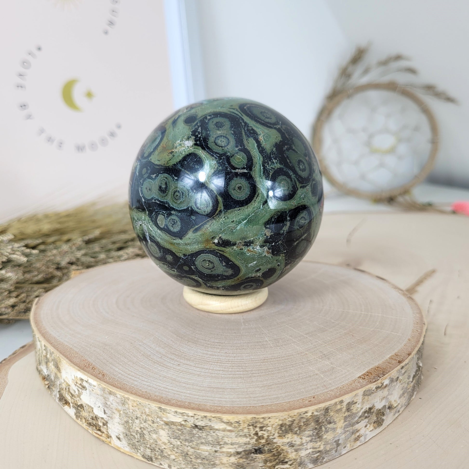 Beim Eldarit handelt es sich um ein Mineral vulkanisches Ursprungs, ein sogenanntes Vulkanit, welches in den tiefsten Schichten der Erdkruste entsteht. Der Eldarit, auch Kambaba Rhyolith genannt, kommt immer in den Naturfarben grün und schwarz vor mit seinen besonderen spiral-kugelförmigen Mustern über das Gestein. Aufgrund dieser besonderen Maserung des Eldarits, gleicht kein Eldarit je dem anderen.