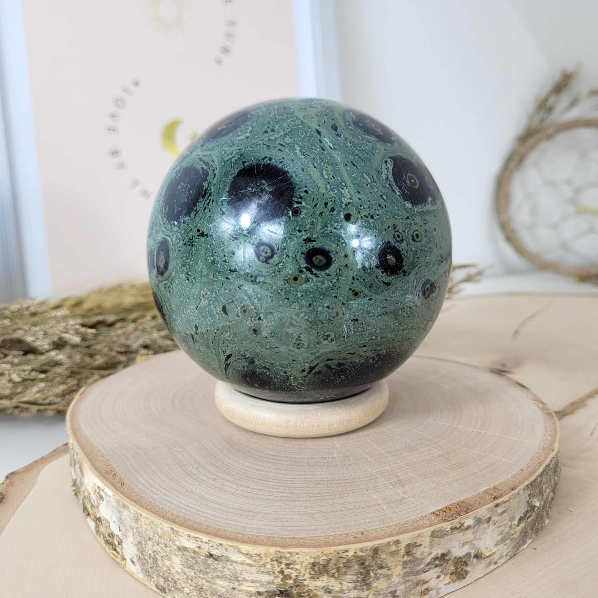 Beim Eldarit handelt es sich um ein Mineral vulkanisches Ursprungs, ein sogenanntes Vulkanit, welches in den tiefsten Schichten der Erdkruste entsteht. Der Eldarit, auch Kambaba Rhyolith genannt, kommt immer in den Naturfarben grün und schwarz vor mit seinen besonderen spiral-kugelförmigen Mustern über das Gestein. Aufgrund dieser besonderen Maserung des Eldarits, gleicht kein Eldarit je dem anderen.