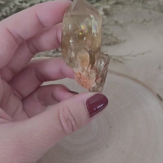 Die Besonderheit der Kundalini Citrine ist die teilweise vorhandene Rillenbildung in den Kristallspitzen, wie man sie von den seltenen Lemurischen Bergkristallen kennt. Der Kundalini Citrin ist komplett naturbelassen in seiner einzigartigen, besonderen Form und weder nachpoliert, noch anderweitig in der Form verändert. Die Kristallspitzen der Kundalini Citrine haben von Natur aus, diese ebenmäßige Form, die ganz besondere Klarheit der Kristalle und teilweise ihre Regenbögen im Kristallinneren bei Lichteinfall und entsprechen der A-Qualitätsstufe aufgrund ihrer Klarheit in den Kristallen.
