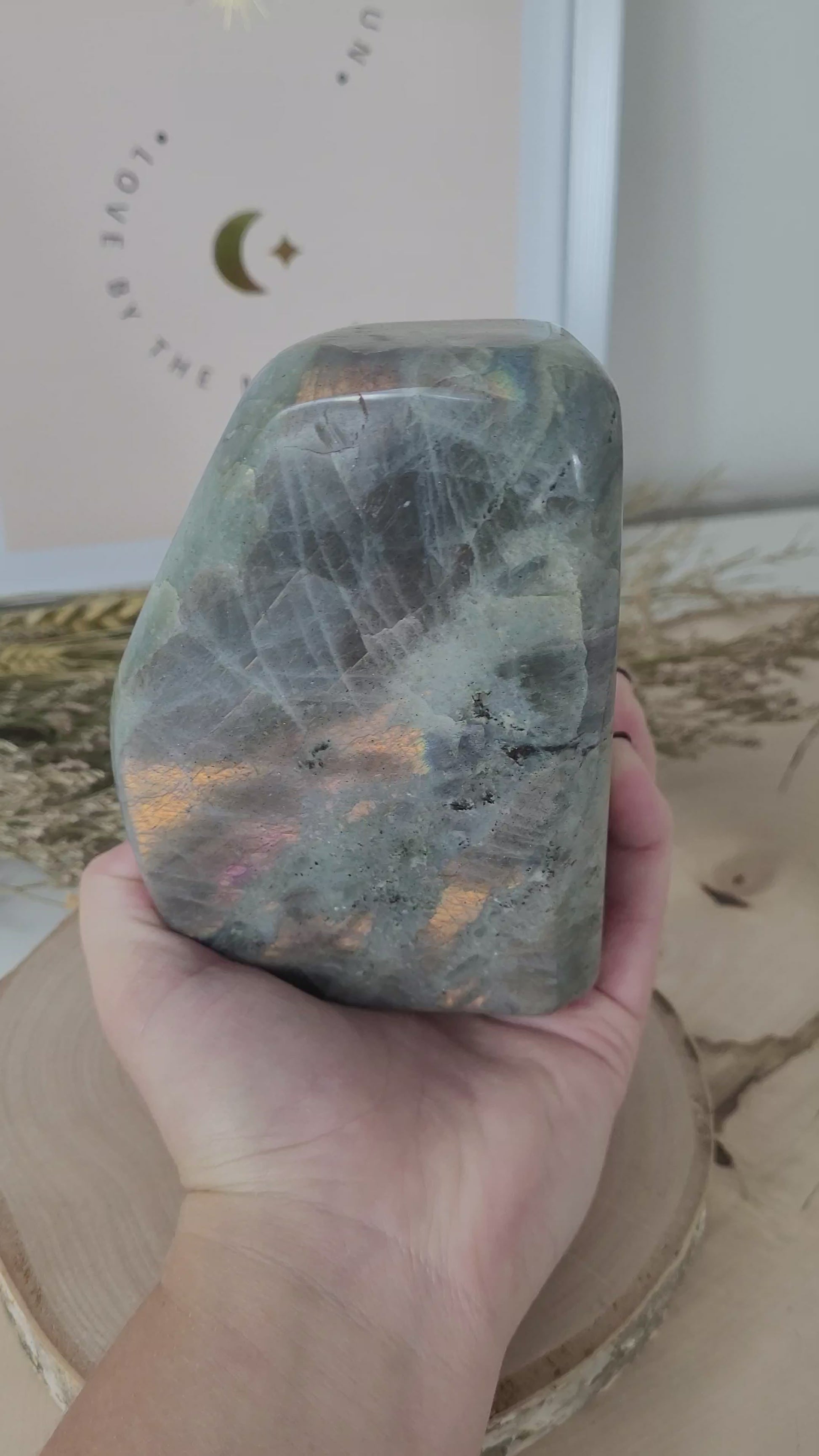 Diese XL grauer Labradorit Freiform hat eine Größe von 12x8cm und wiegt 1,21kg. Es handelt sich genau um die Labradorit Freiform, die auf den Bildern zu sehen ist.
