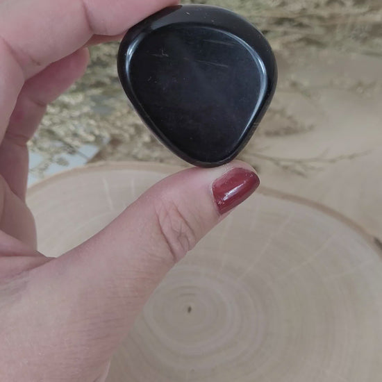 Der Lamellen Obsidian Scheibenstein hat eine Größe zwischen 3,5-4,5cm.
