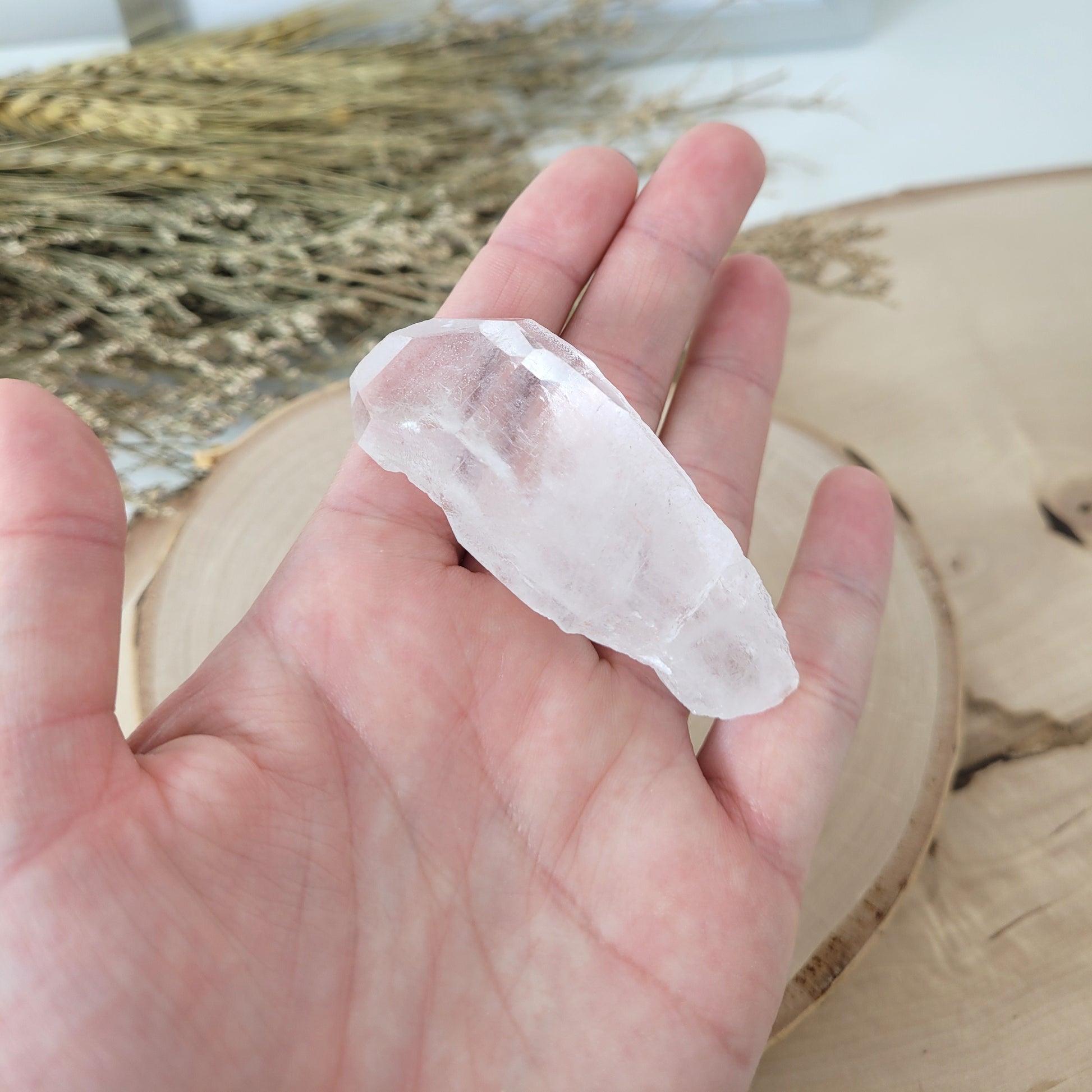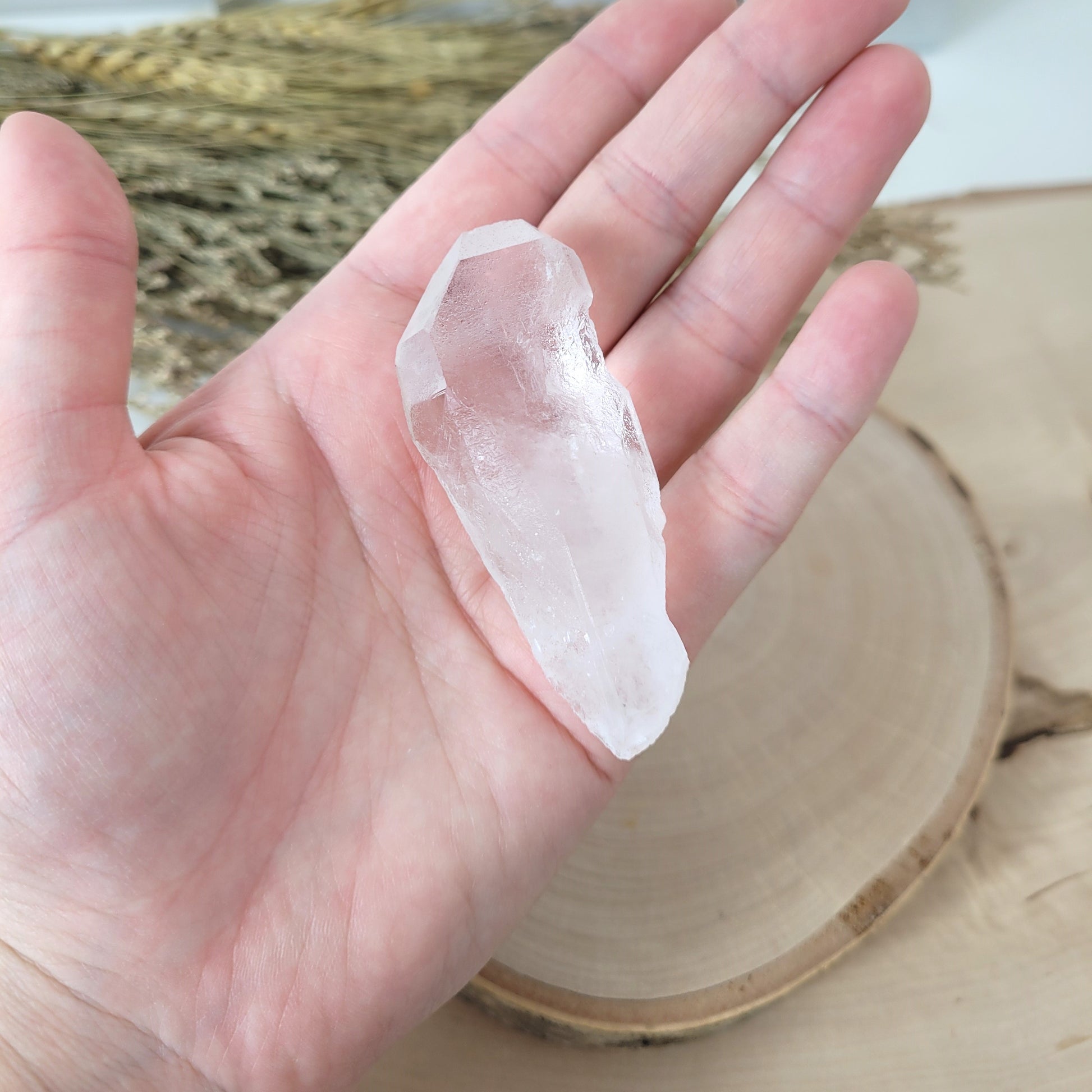 Die Lemurien Bergkristall Naturspitze hat eine Größe von 6,6 x 2,3 cm und wiegt 42g. Es handelt sich genau um die Naturspitze, die auf den Bildern zu sehen ist.