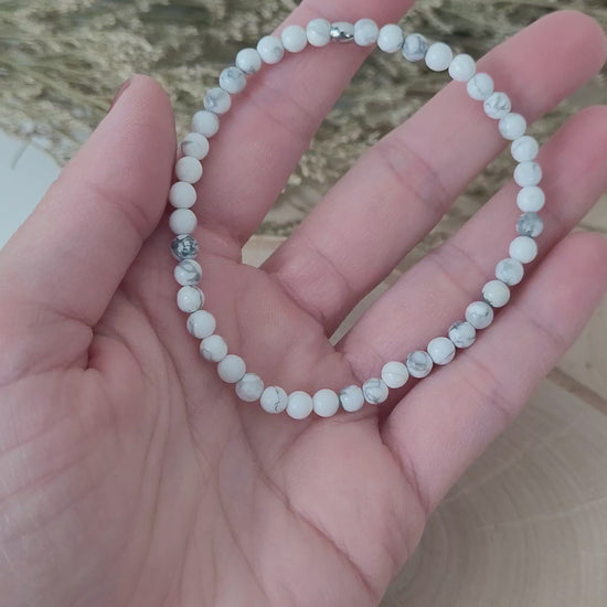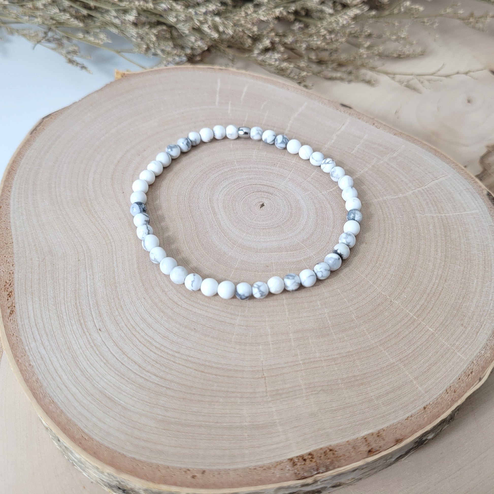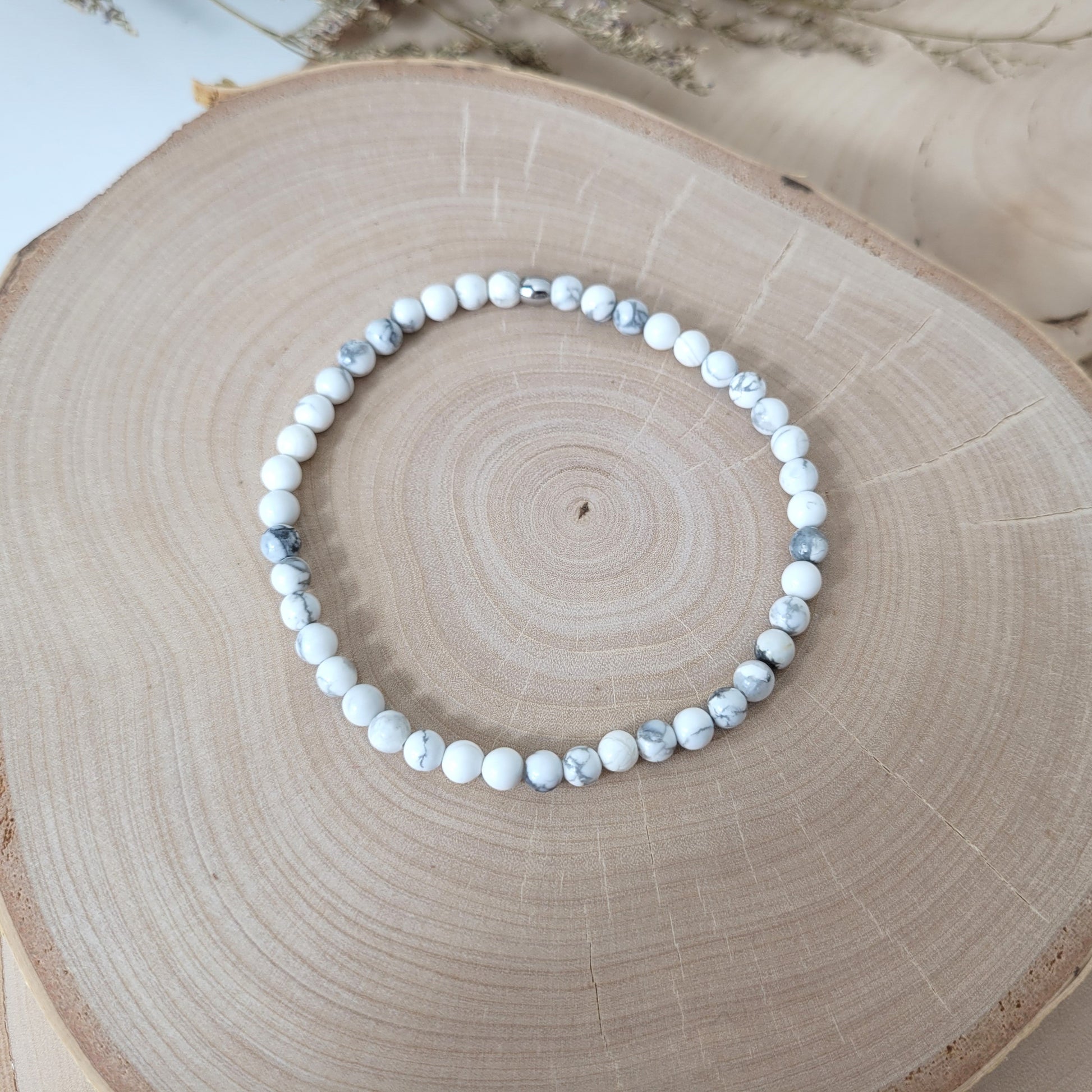 Magnesit Armband Kugeln 4mm, Endperle aus hochwertigem Edelstahl (Stainless Steel, rostfrei und wasserfest). Armbandlänge ca. 19 cm.