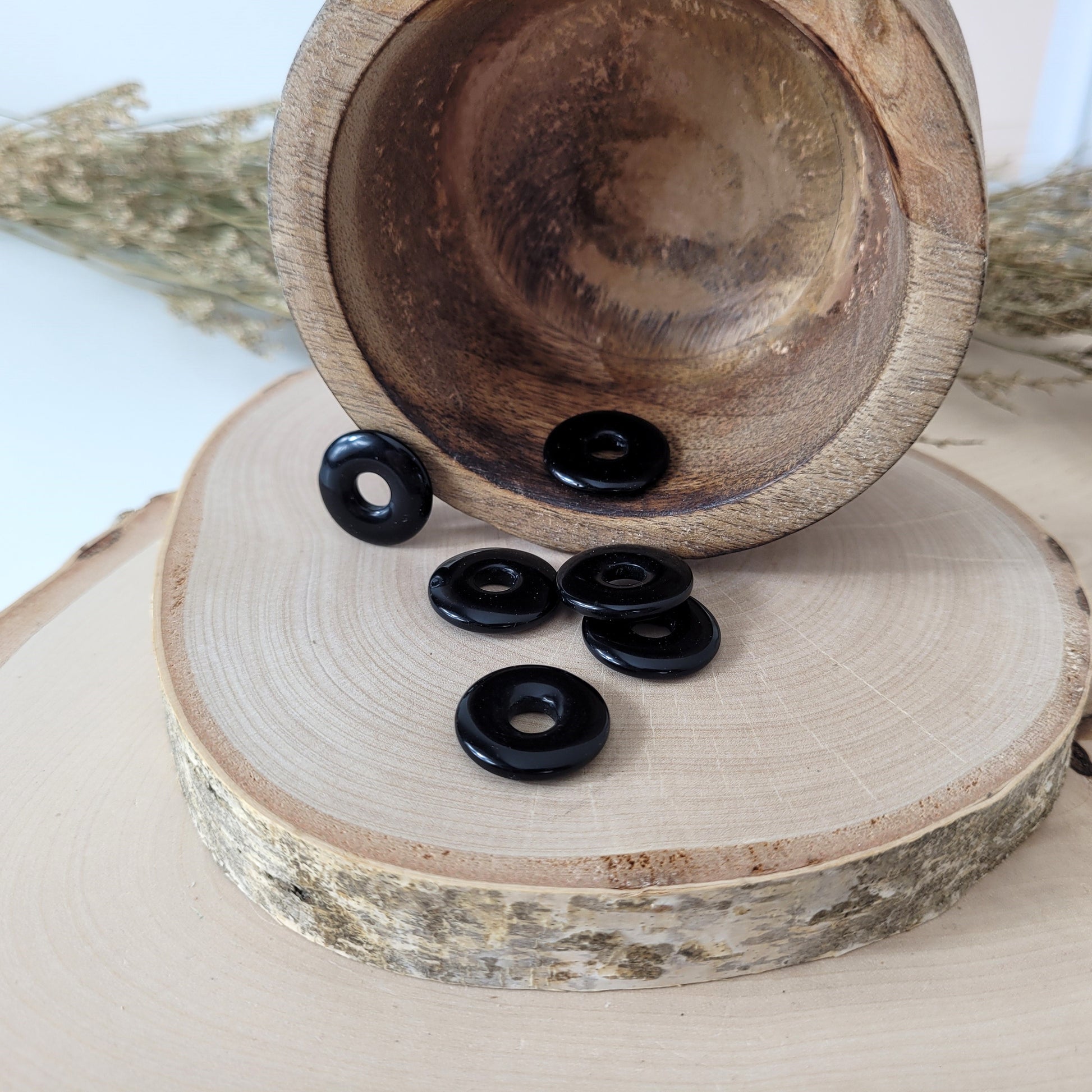 Dieser wunderschöne Obsidian Donut hat einen Durchmesser von ca. 1,9-2cm. Die Form eines Edelstein Donuts symbolisiert die Unendlichkeit und ein Edelstein Donut gilt aus spiritueller Sicht als Schutzstein, dazu noch aus wunderschönem schwarzen Obsidian geschliffen. Der Kreis steht für den Fluss des Lebens und das Loch in der Mitte dafür, dass in der Materie alles miteinander verbunden ist.