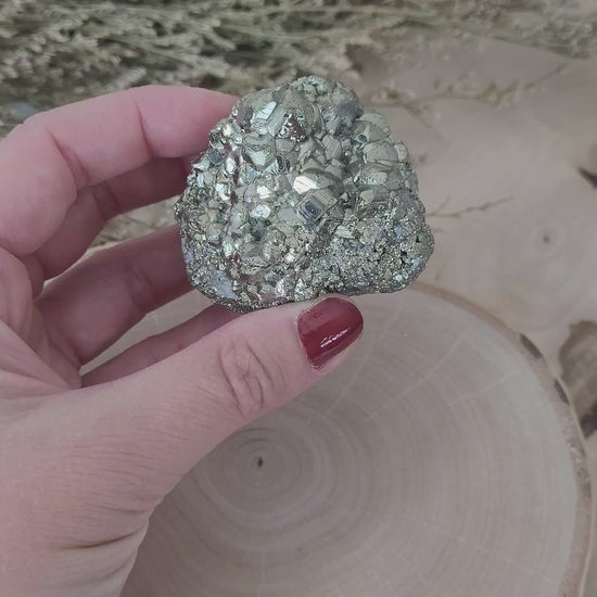 Die Pyrit Kristallstufe hat eine Größe von 4,7 x 4,1 cm und wiegt 188g. Es handelt sich genau um die Pyrit Kristallstufe, die auf den Bildern zu sehen ist.