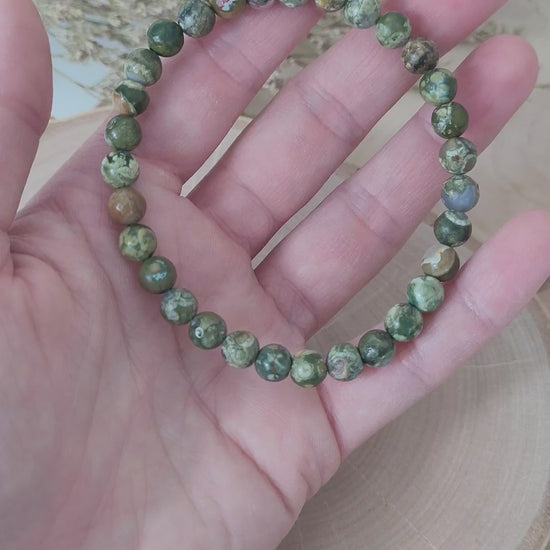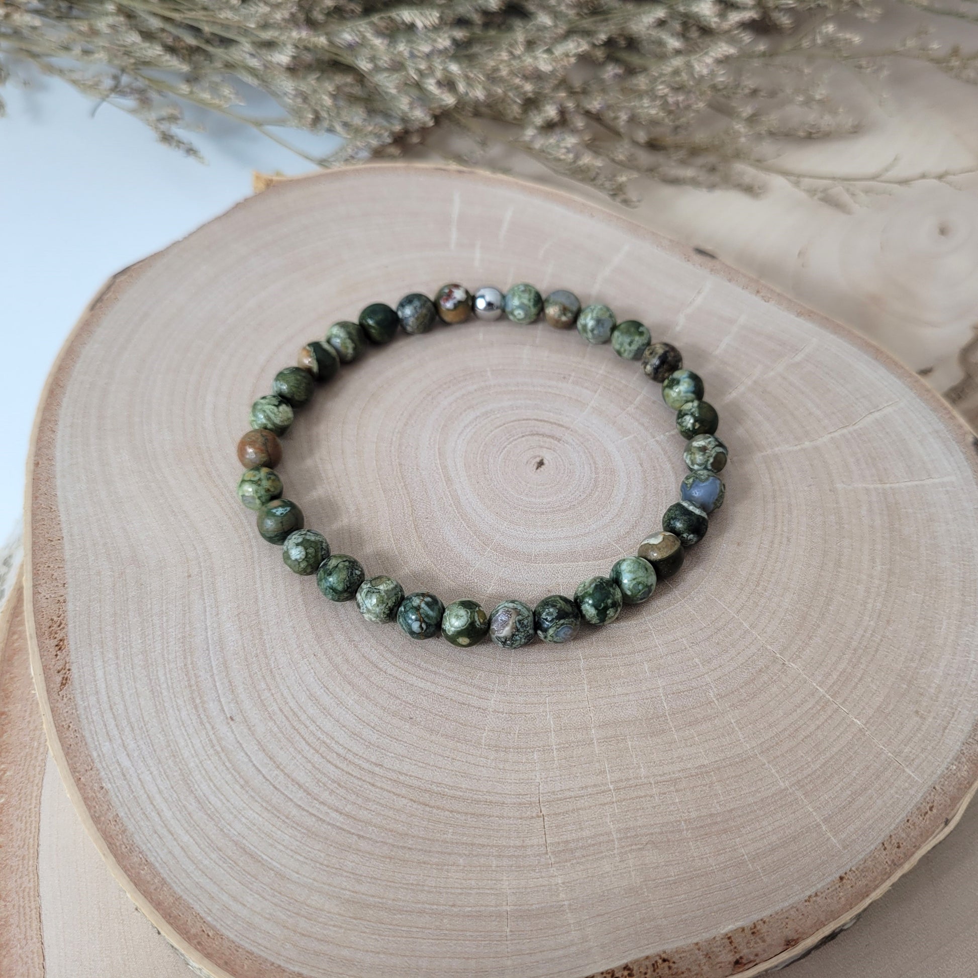 Rhyolith Armband Kugeln 6mm, Endperle aus hochwertigem Edelstahl (Stainless Steel, rostfrei und wasserfest). Armbandlänge ca. 19 cm.