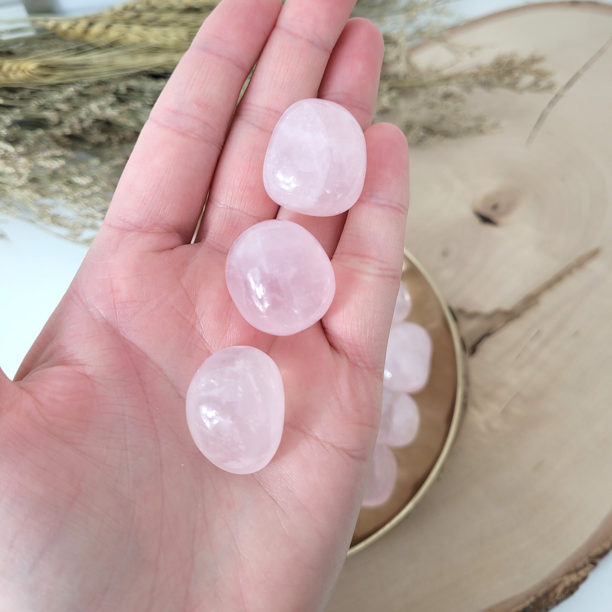 Diese Rosenquarz Trommelsteine faszinieren jeder auf ihre Art mit entweder ihrer wunderschönen sanften rosa Naturfarbe, oder ihrem so klaren Kristallinnenleben, teils mit ihren Regenbögen bei Lichteinfall und teils sogar mit einem Stern bei Lichtbrechung im Kristallinneren.