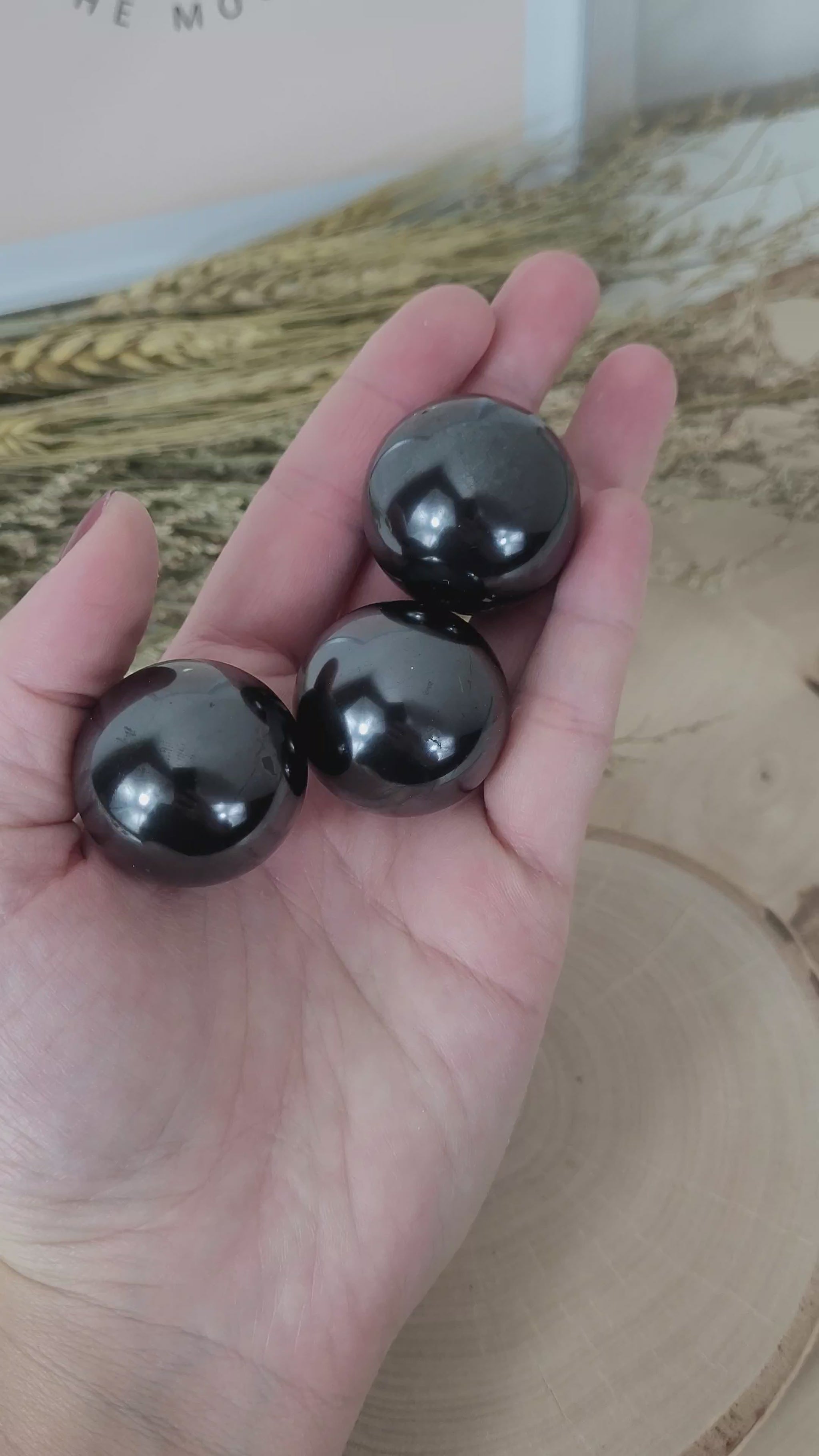 Schungit Kugel 3cm inklusive Hämatit Ring zu Aufstellen