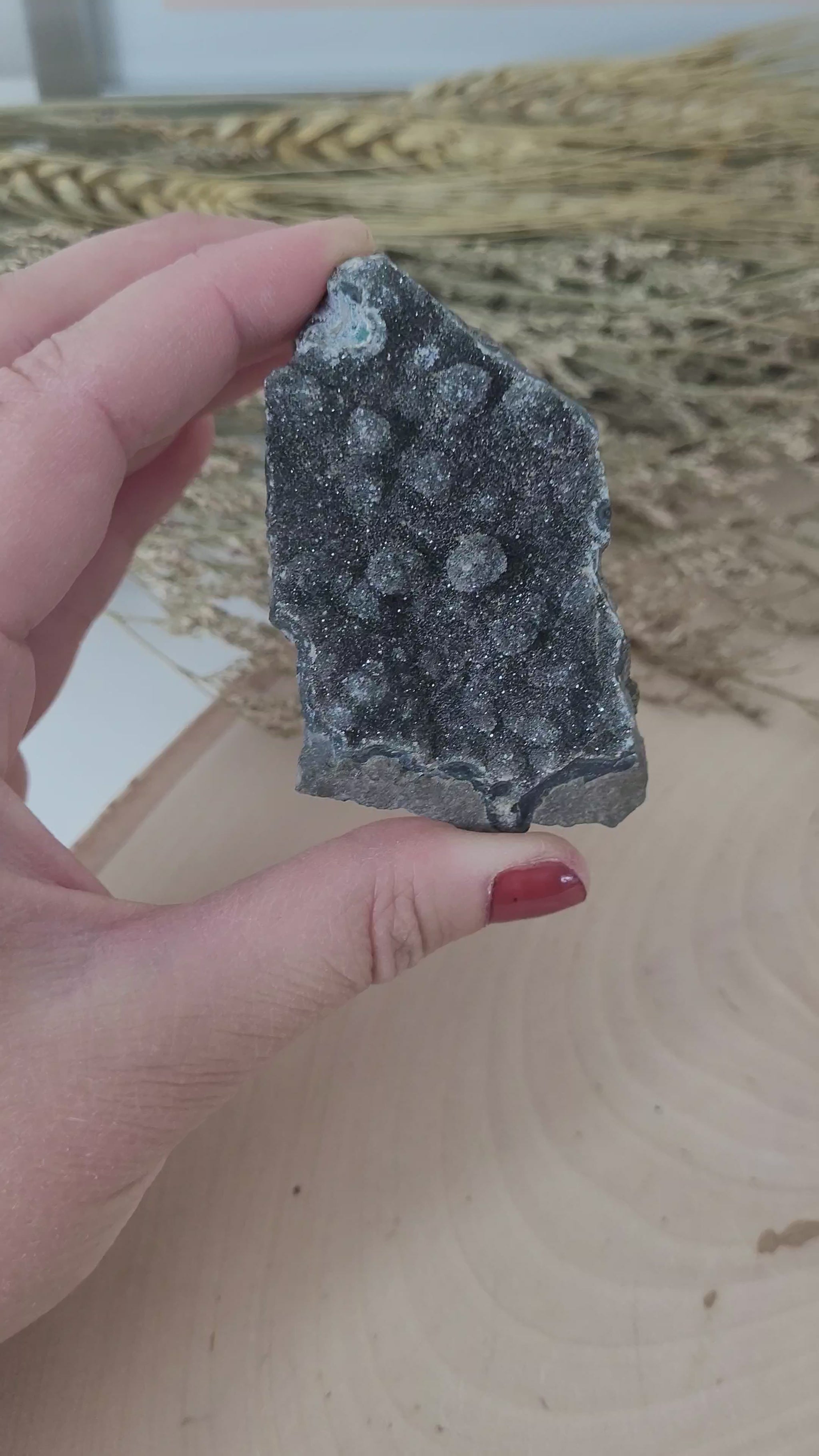 Es handelt sich bei allen Mineralien, Kristallen und Fossilien um echte Naturprodukte mit ihrer jeweils einzigartigen Form, Farbe und Struktur und einem Alter von zig Millionen von Jahren. Kleine Unregelmäßigkeiten in der Struktur oder kleine fühlbare Kanten, auch in einer geschliffenen Form, können vorhanden sein und sind ein natürliches Merkmal der jeweiligen Kristallstruktur.