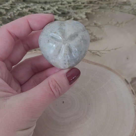 Dieses wunderschöne, besondere Seeigel Fossil ist nicht in Herzform geschliffen, sondern dieser Seeigel gehörte zu der Gattung der Herzseeigel, auch Micraster genannt. Diese Gattung der Herzseeigel, die viele verschiedene Arten dieser Meeresbewohner umfasst, lebt bis heute in den Weltmeeren. Allein in der Nordsee leben um die 5 Arten von Herzseeigeln. Diese Herzseeigel Fossilien sind dagegen ca. 150 Millionen Jahre alt.