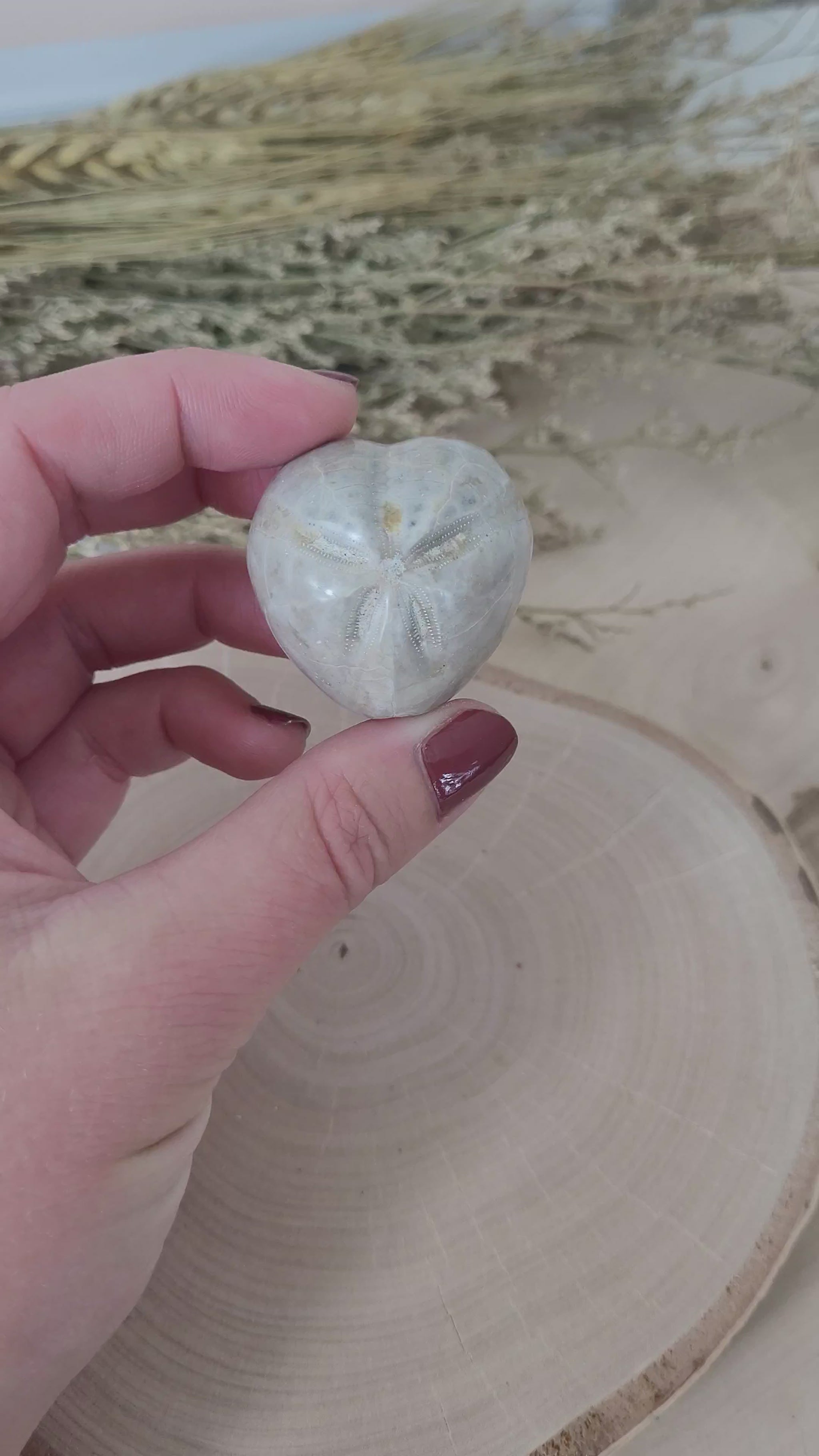 Dieses wunderschöne, besondere Seeigel Fossil ist nicht in Herzform geschliffen, sondern dieser Seeigel gehörte zu der Gattung der Herzseeigel, auch Micraster genannt. Diese Gattung der Herzseeigel, die viele verschiedene Arten dieser Meeresbewohner umfasst, lebt bis heute in den Weltmeeren. Allein in der Nordsee leben um die 5 Arten von Herzseeigeln. Diese Herzseeigel Fossilien sind dagegen ca. 150 Millionen Jahre alt.