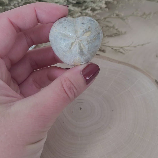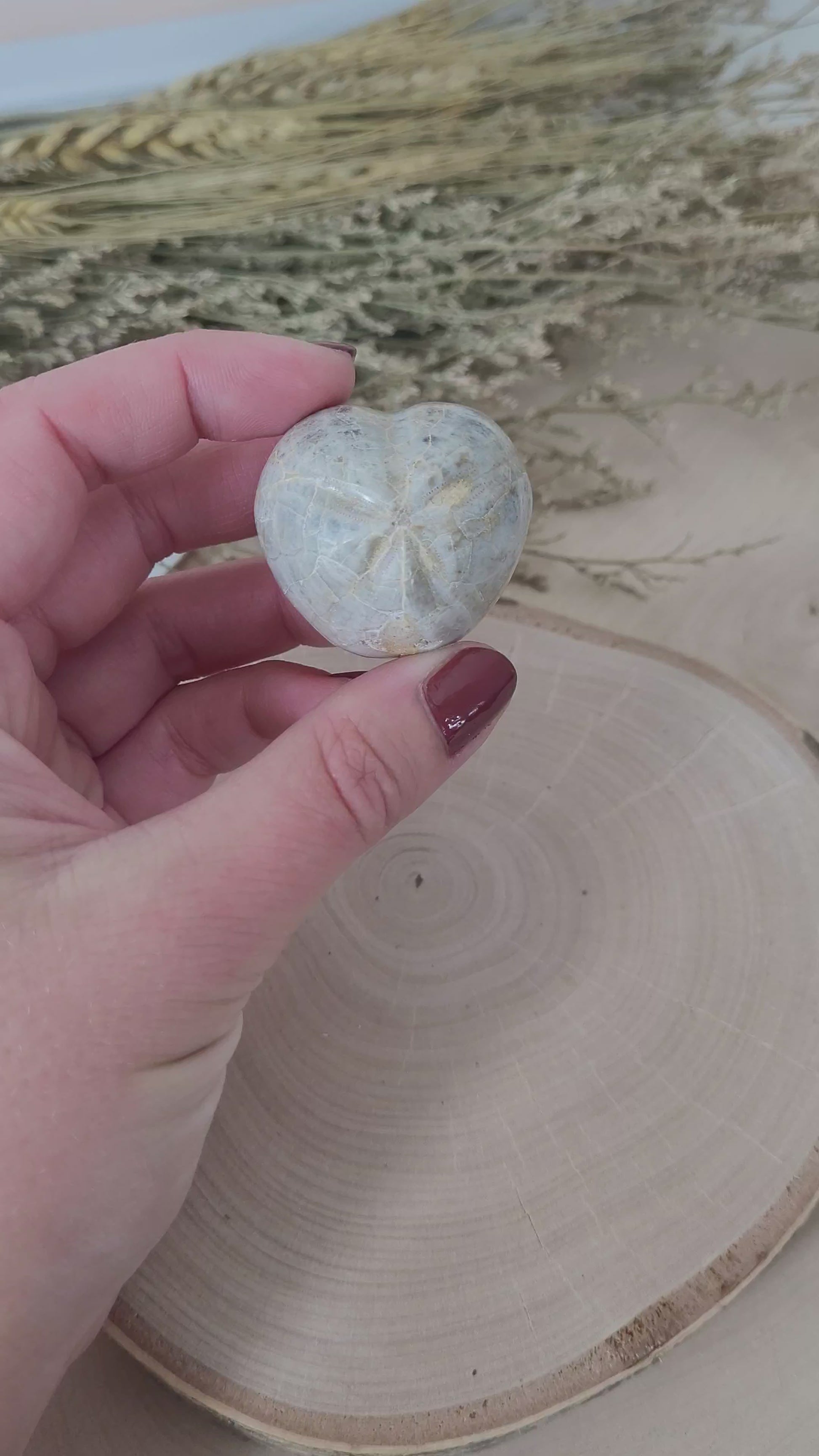 Dieses wunderschöne, besondere Seeigel Fossil ist nicht in Herzform geschliffen, sondern dieser Seeigel gehörte zu der Gattung der Herzseeigel, auch Micraster genannt. Diese Gattung der Herzseeigel, die viele verschiedene Arten dieser Meeresbewohner umfasst, lebt bis heute in den Weltmeeren. Allein in der Nordsee leben um die 5 Arten von Herzseeigeln. Diese Herzseeigel Fossilien sind dagegen ca. 150 Millionen Jahre alt.