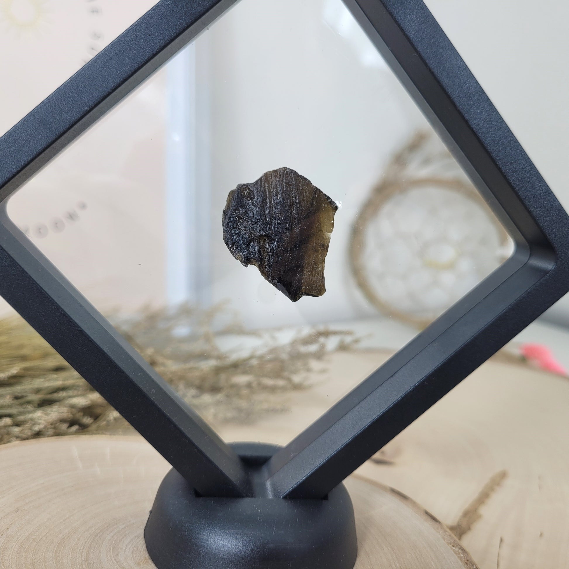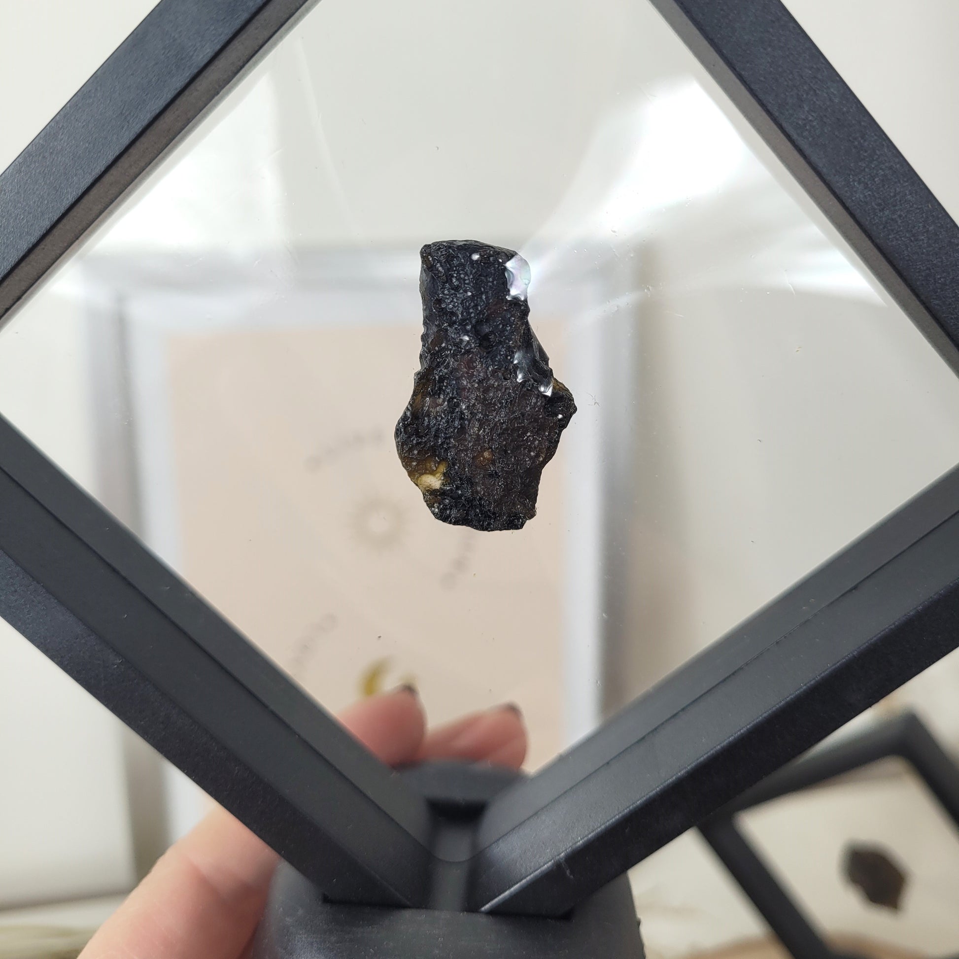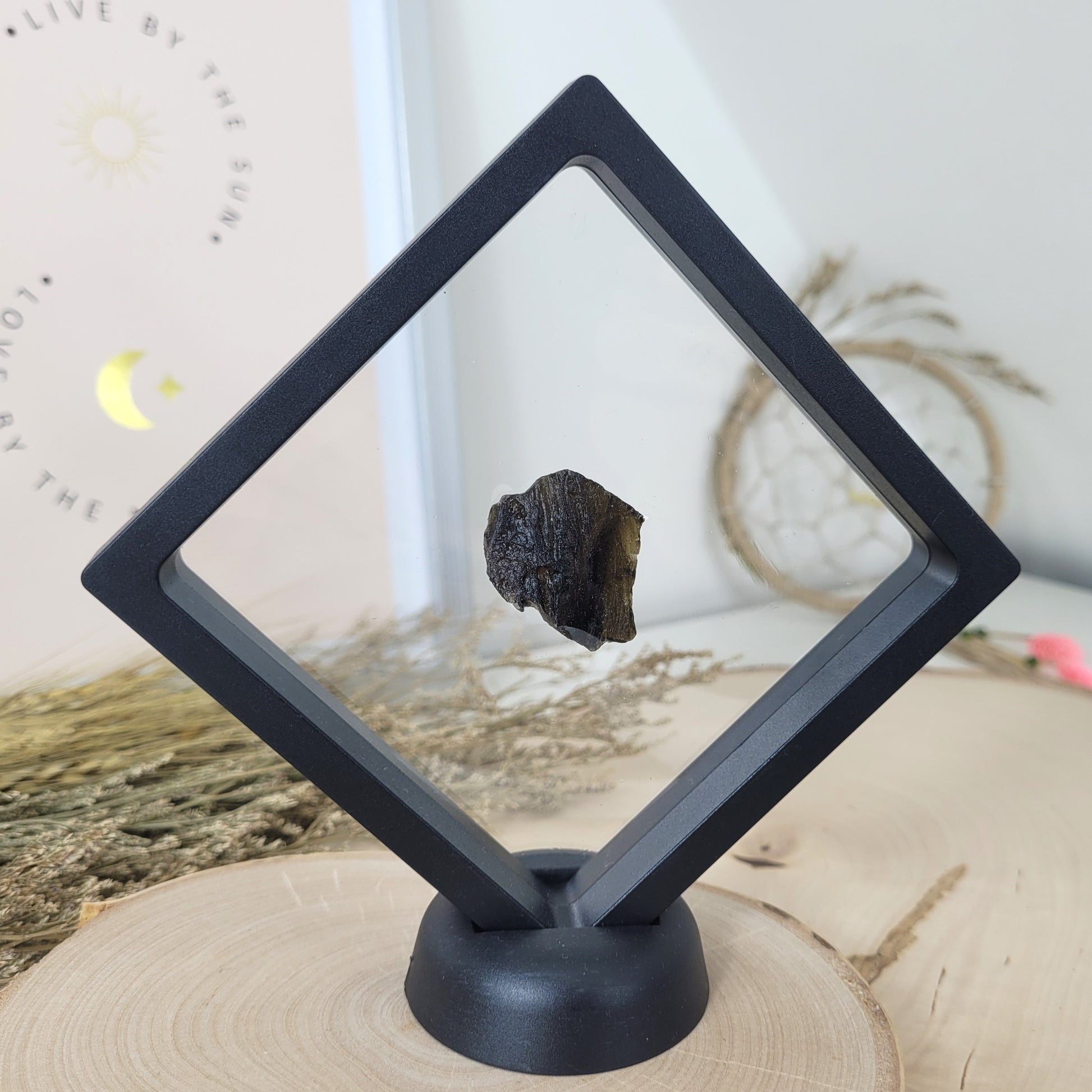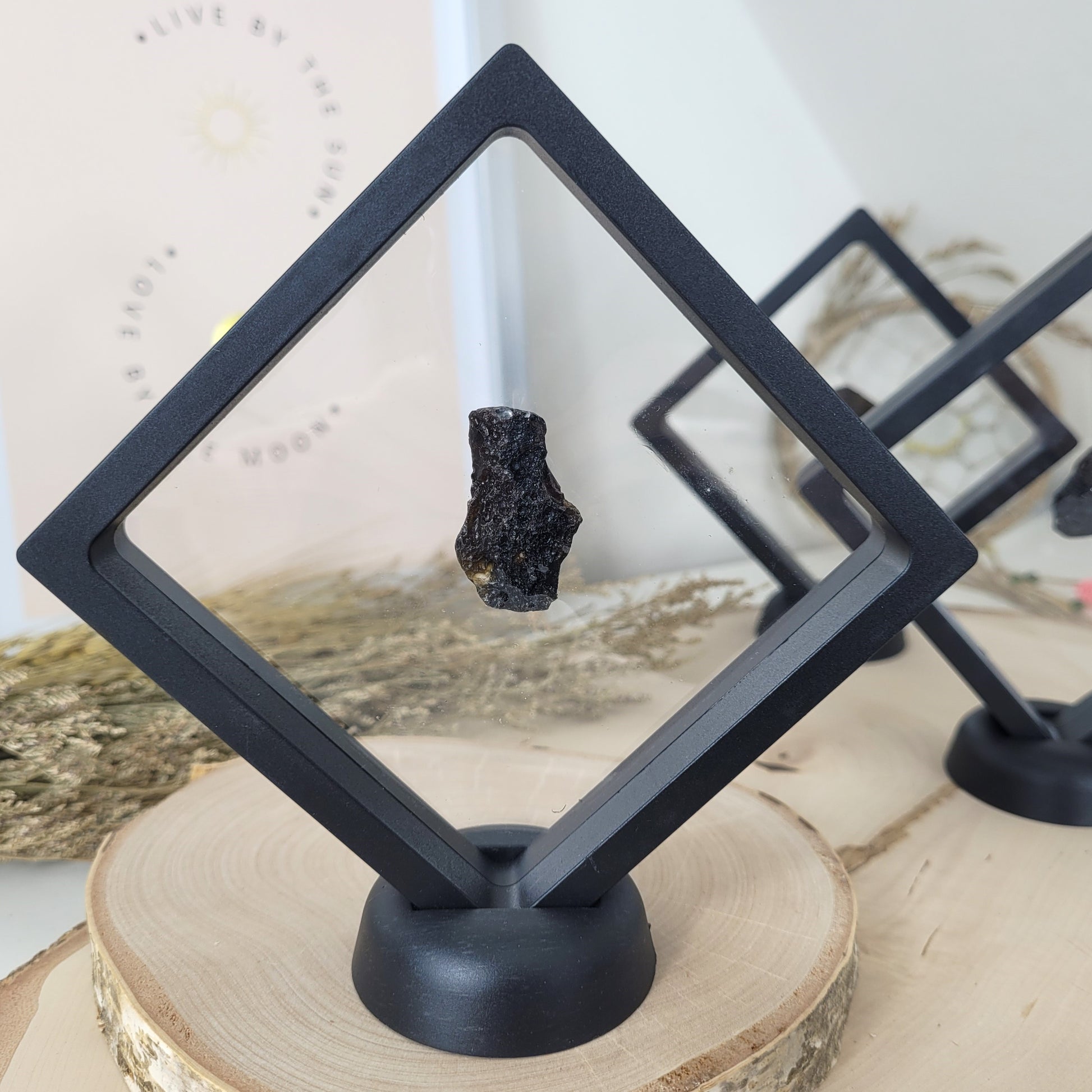Du erhältst einen Tektit im Schweberahmen. Natürlich kann dieser auch je nach belieben aus dem Schweberahmen entnommen werden. Der Tektit hat eine Größe zwischen 2 - 3 cm. Jeder Tektit ist einzigartig, daher kann dein Tektit abweichend von den Beispielbildern aussehen.