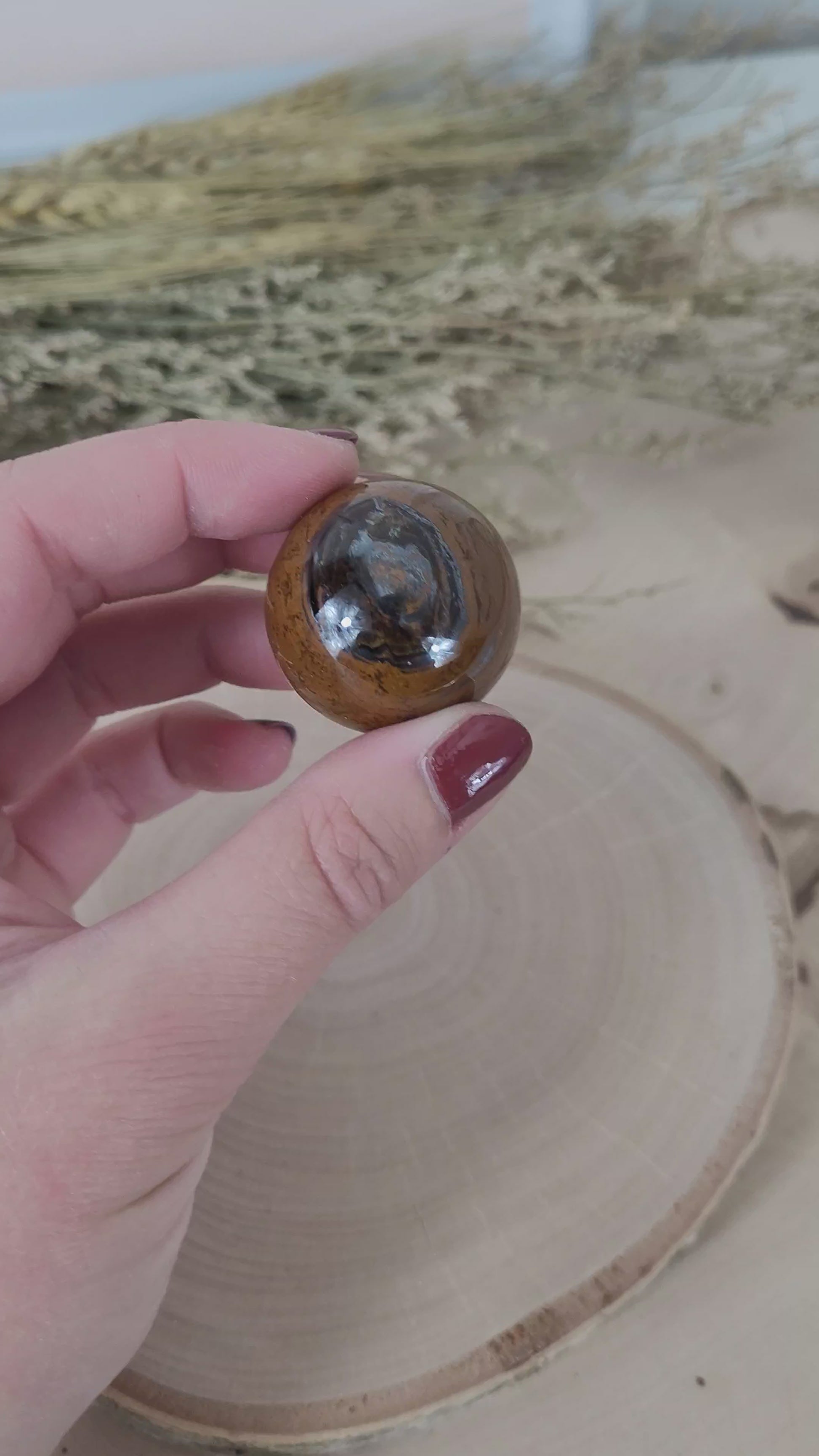 Diese Tigereisen Kugel hat einen Durchmesser von ca. 3cm und wird inklusive dem passenden Naturstein Hämatit Ring zum Aufstellen geliefert. Es handelt sich genau um die Tigereisen Kugel, die auf den Bildern zu sehen ist.