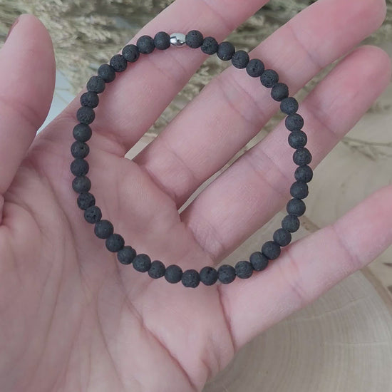 Versteinerte Lava Armband Kugeln 4mm, Endperle aus hochwertigem Edelstahl (Stainless Steel, rostfrei und wasserfest). Armbandlänge ca. 19 cm.
